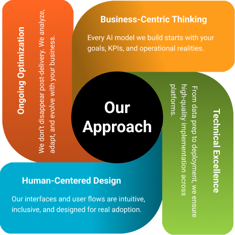 We believe AI isn’t just about algorithms — it’s about solving meaningful problems with purpose-driven design, scalable engineering, and a deep understanding of your business context.